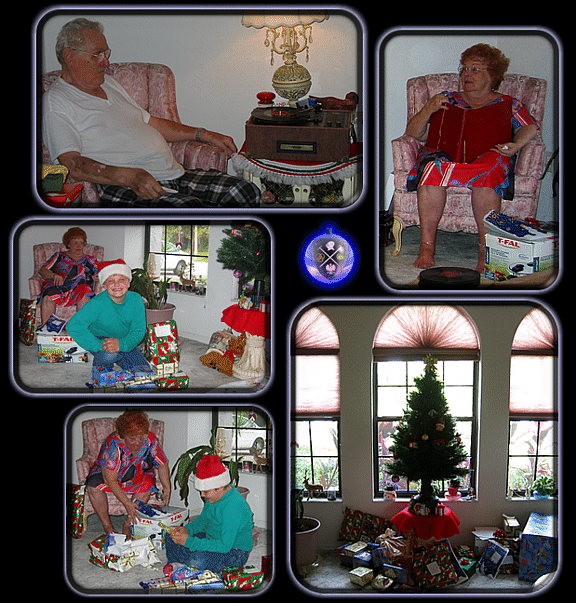 The decorations were hung and Santa arrived with the gifts. Now all that's left is the Celebration. Christmas Day arrived Busha prepared a feast unfortunately Lady Cas was home sick in bed and could not attend so Lord Paul took her Gifts and some of the Feast home for her. Lord Andy received his long awaited Hamtaro Gameboy game and was he ever elated! Bush and Papa received a record player that they could play their old 78 records on. Talk about kids at Christmas I've never seen them so happy. They pulled out their old records some of which were over 60 years old. The first one they played was a song that they were engaged to. Hey Busha is that tears in your eyes.